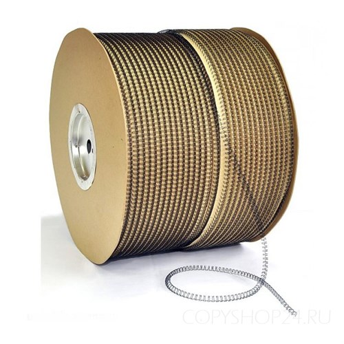 Черная металлическая пружина для ручного переплета календарей, инструкций, презентаций в бобине размер 5/16". Шаг 3:1. Преимущество металлических пружин в более надежном скреплении, стильном внешнем виде и в возможности раскрытия готовых документов на 360 градусов. В нашем интернет-магазине быстрая и недорогая доставка по СПб, Москве и РФ.