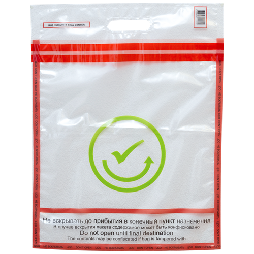Данный пакет Duty Free для перевозки потенциально опасных жидкостей производится по требованиям ICAO. Плотный пластик устойчив на разрыв и хорошо сопротивляется агрессивным веществам, имеется прочная ручка для переноски. Сейф-лента точно показывает вскрытие пакета, прочно заклеивает его и при отрыве не может быть возвращена в исходное положение. По стандарту пакеты ИКАО также снабжены штрих-кодом и соответствующей маркировкой.